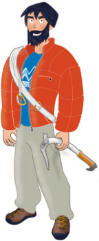 Celou cestu vás bude provázet celkem sympatický rodilý horal, kterého žáci 3.B pojmenovali Teodor Mountbluelezec. Teodor vás během vaší cesty bude šikanovat všelijakými nástrahami, provokačními hláškami a špatnými známkami. Teodor má tmavé vlasy a vousy alá pražský bezdomovec, nosí oranžovou zimní bundu a pod ní jen modré tričko s logem svého hloupého programu. Z toho můžeme usuzovat, že rozhodně nemá strach z teploty -30° Celsia a klidně se jí postaví v rozepnuté bundě a tričku. V ruce drží cepín, který vám omlátí o hlavu pokaždé, když uděláte chybu.